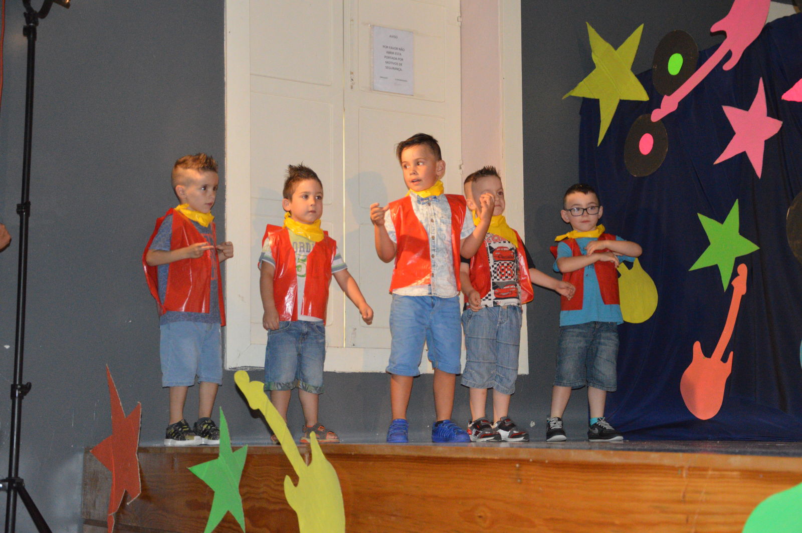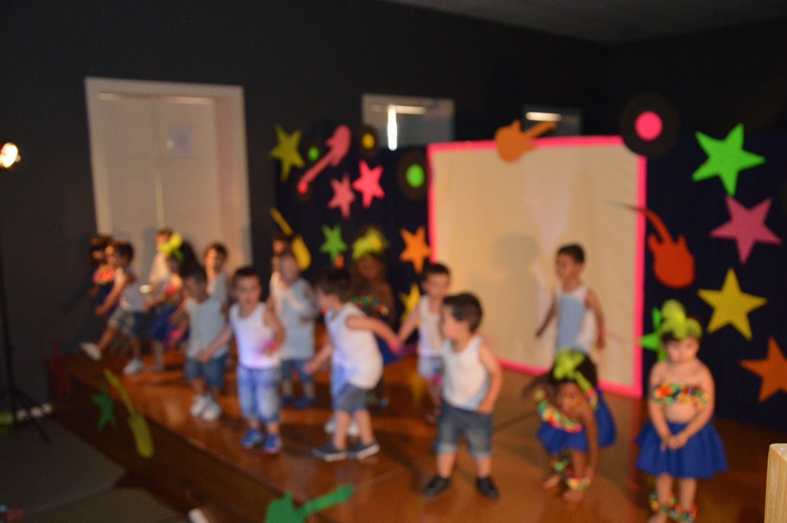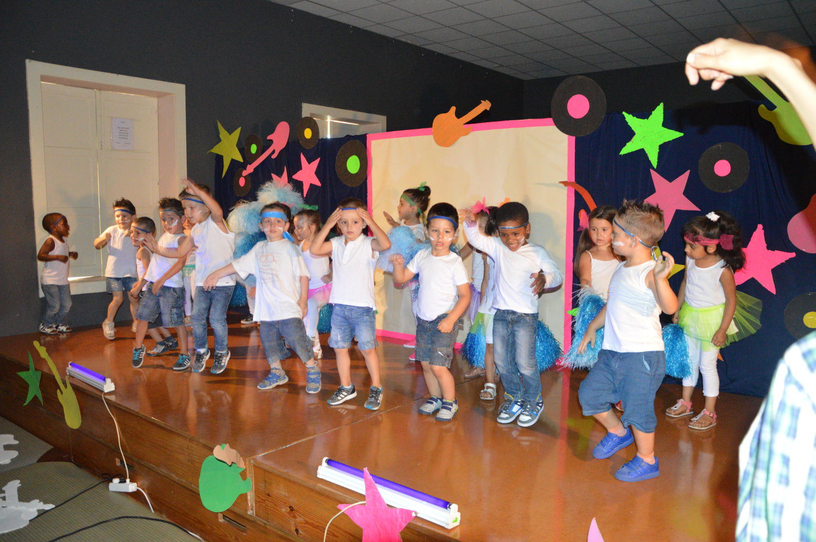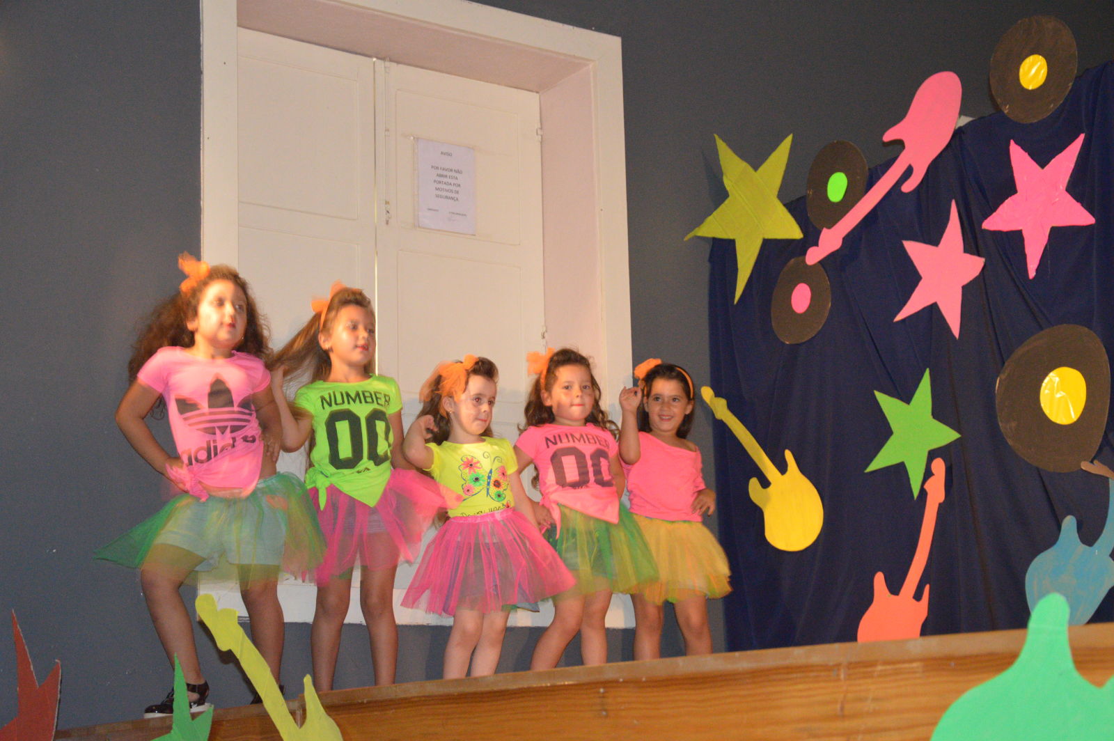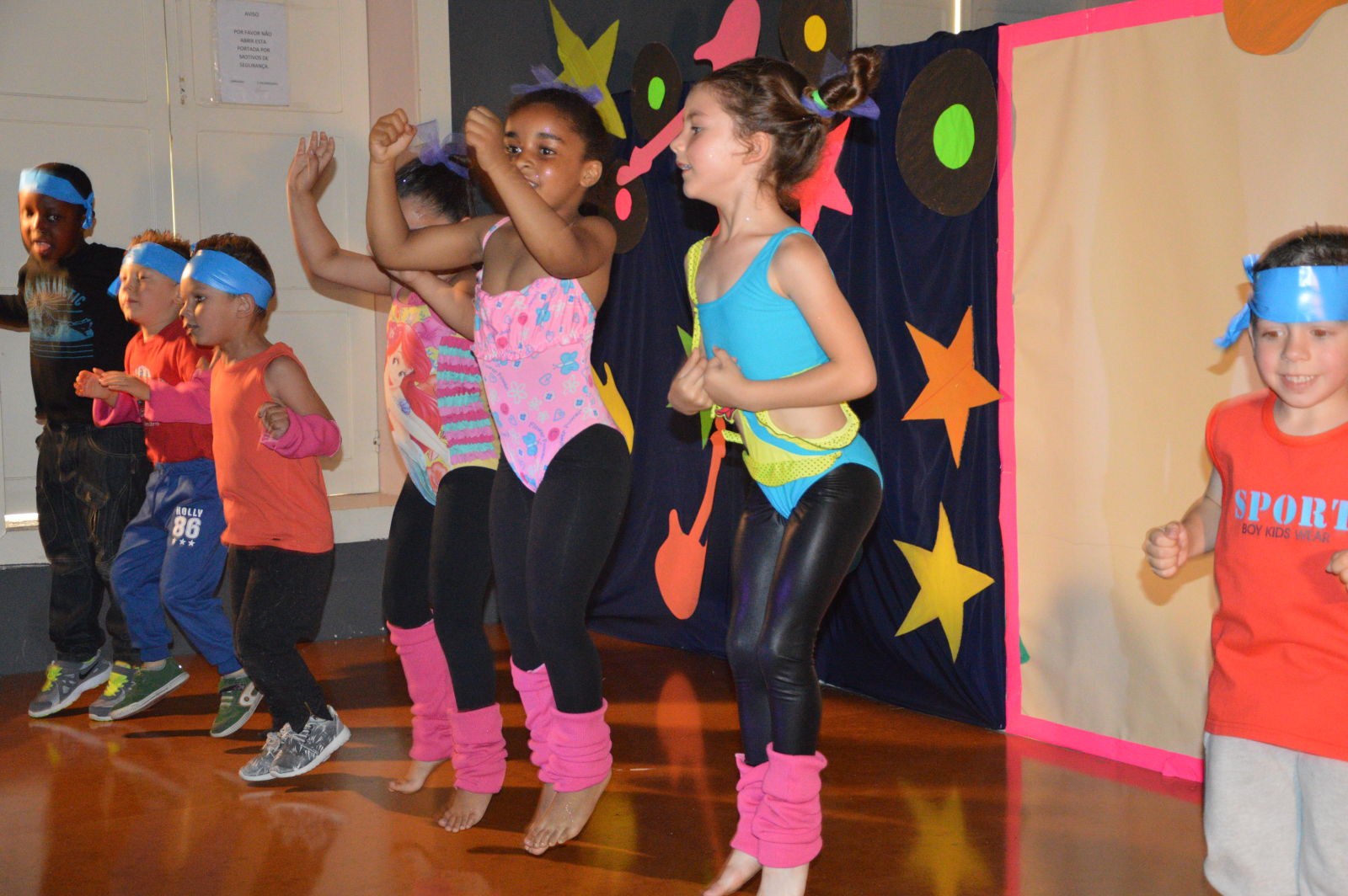 No passado dia 3 de Julho celebramos o final de mais um ano letivo. Fizemos uma grande festa com a presença dos pais, que vieram assistir a um espetáculo protagonizado pelos meninos de todas as salas, que teve como tema os anos 80! No início houve lugar a uma pequena apresentação de judo. Depois, cada sala apresentou um número de dança com um tema musical dessa década! Os finalistas também tiveram direito a um momento especial para assinalar o final de uma etapa, que esperamos, tenha sido muito importante nas suas vidas. Receberam uma cartola, uma bengala, um livro e um diploma. No fim ainda dançaram mais uma vez e assistiram a uma apresentação de fotografias que ilustrou um pouco do seu percurso nesta escola. Os pais que tiveram disponibilidade para nos ajudar no embelezamento do recreio receberam um diploma como reconhecimento pela ajuda prestada. E ainda houve espaço para um pequeno convívio entre todos no recreio.