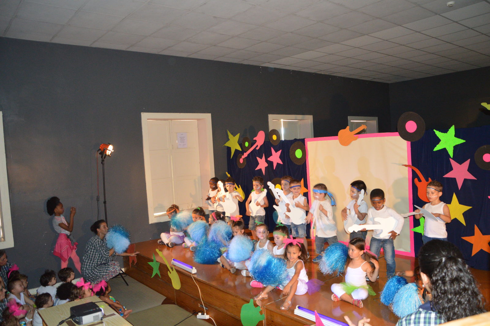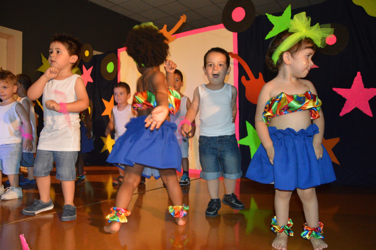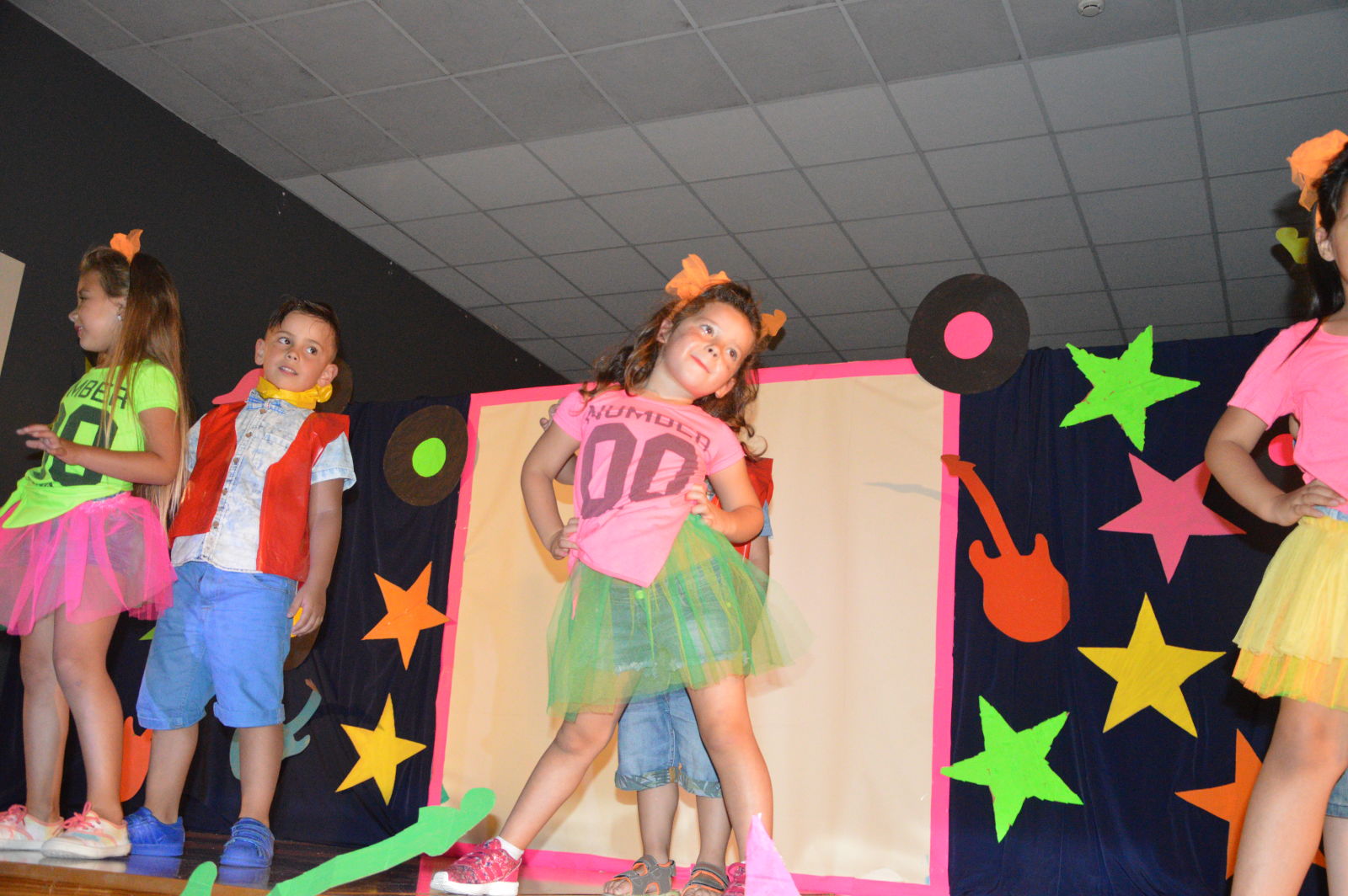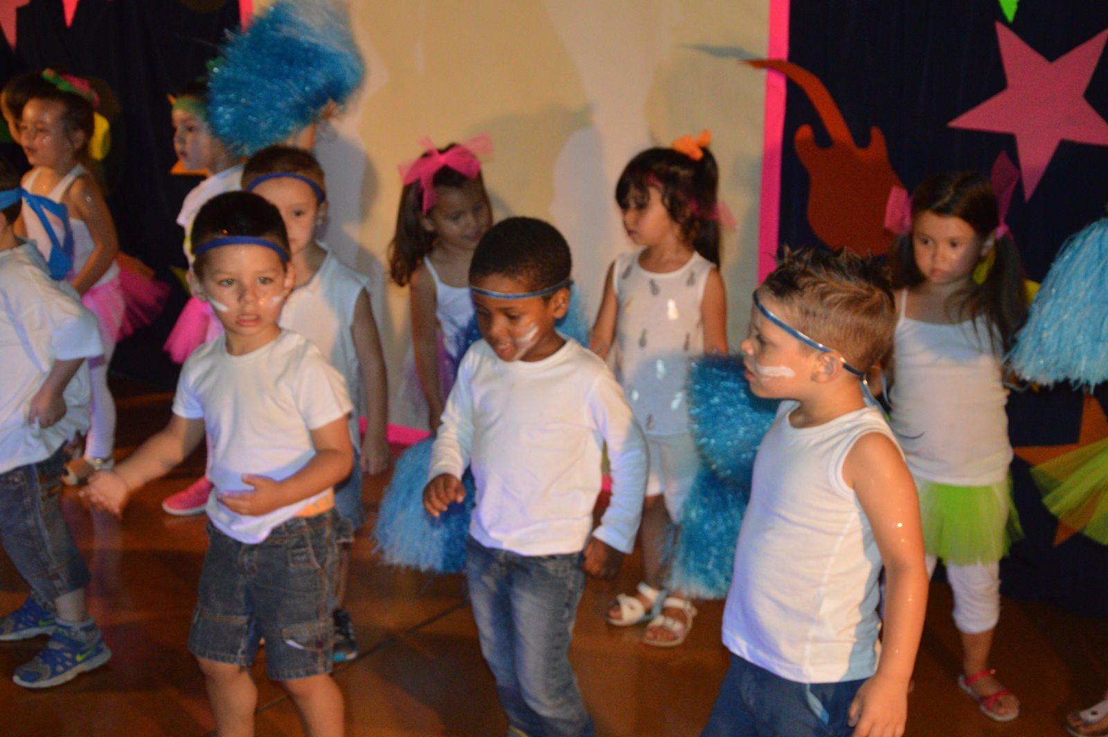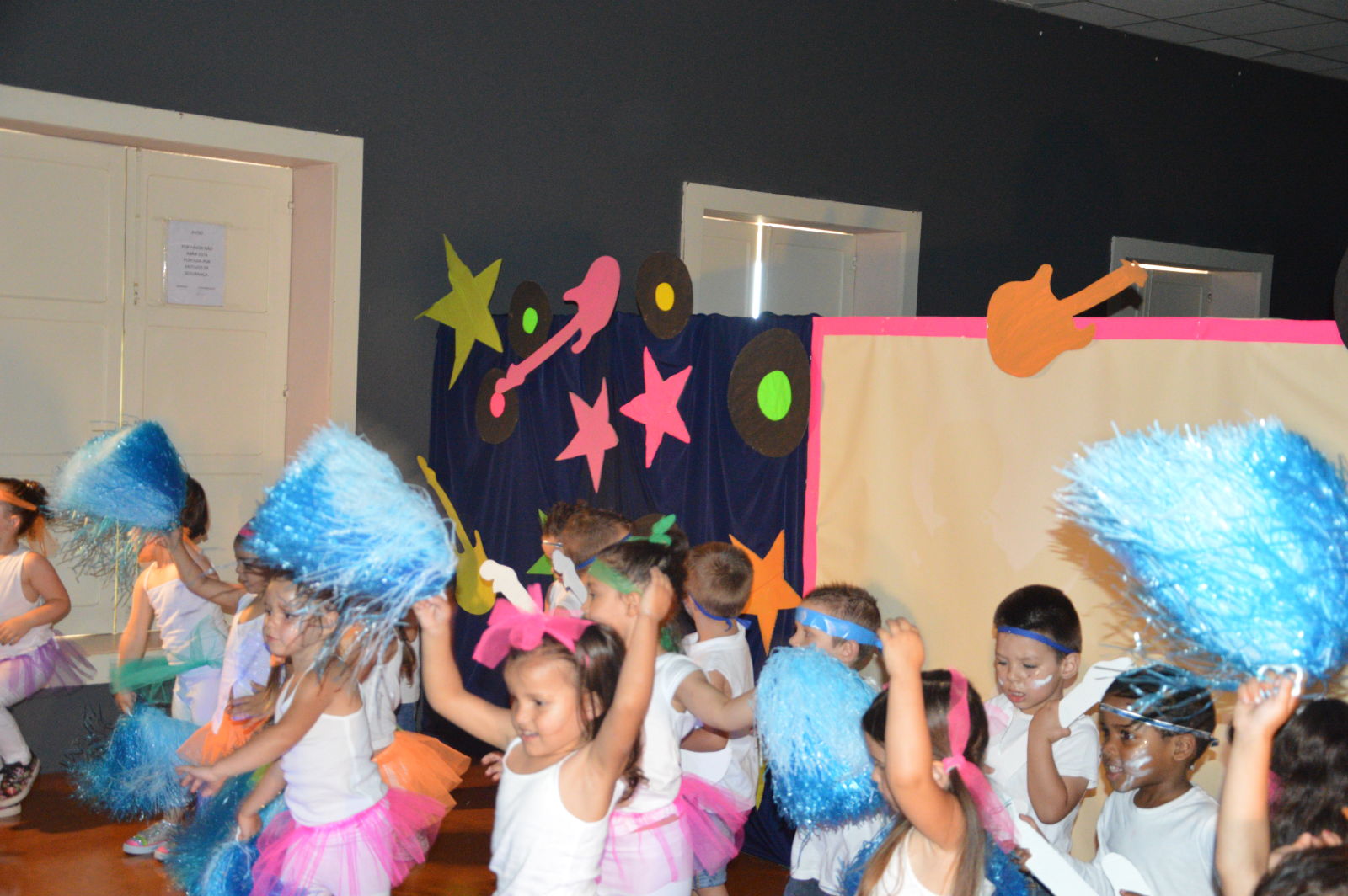 No passado dia 3 de Julho celebramos o final de mais um ano letivo. Fizemos uma grande festa com a presença dos pais, que vieram assistir a um espetáculo protagonizado pelos meninos de todas as salas, que teve como tema os anos 80! No início houve lugar a uma pequena apresentação de judo. Depois, cada sala apresentou um número de dança com um tema musical dessa década! Os finalistas também tiveram direito a um momento especial para assinalar o final de uma etapa, que esperamos, tenha sido muito importante nas suas vidas. Receberam uma cartola, uma bengala, um livro e um diploma. No fim ainda dançaram mais uma vez e assistiram a uma apresentação de fotografias que ilustrou um pouco do seu percurso nesta escola. Os pais que tiveram disponibilidade para nos ajudar no embelezamento do recreio receberam um diploma como reconhecimento pela ajuda prestada. E ainda houve espaço para um pequeno convívio entre todos no recreio.