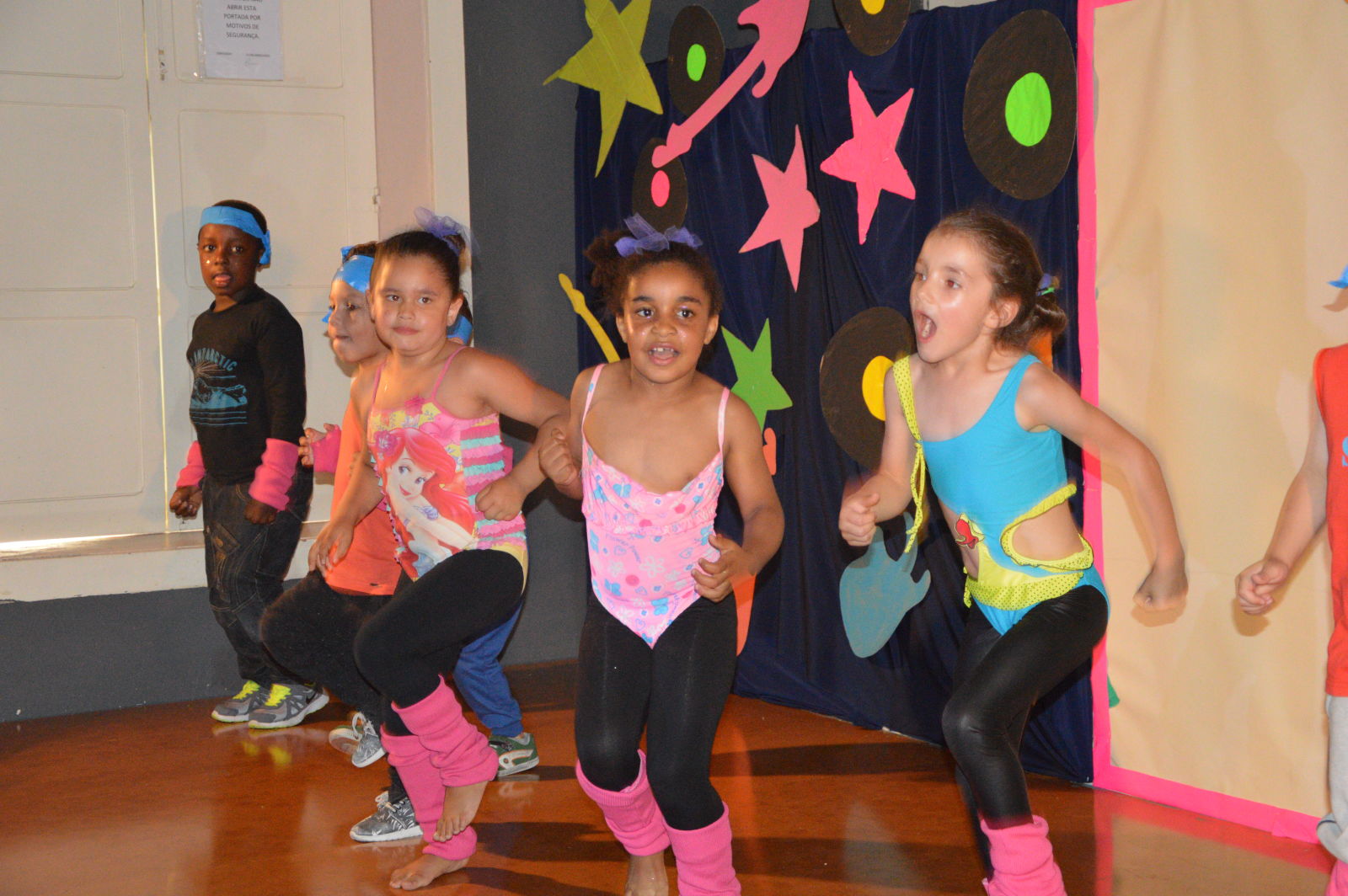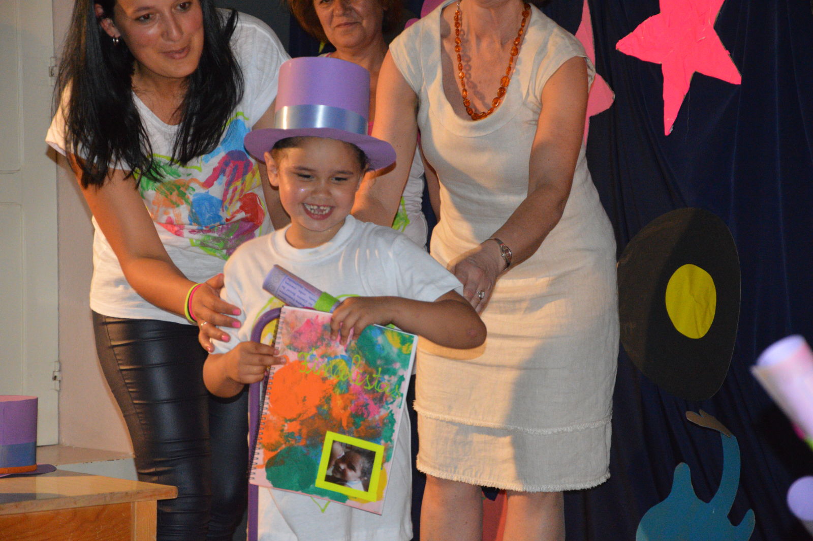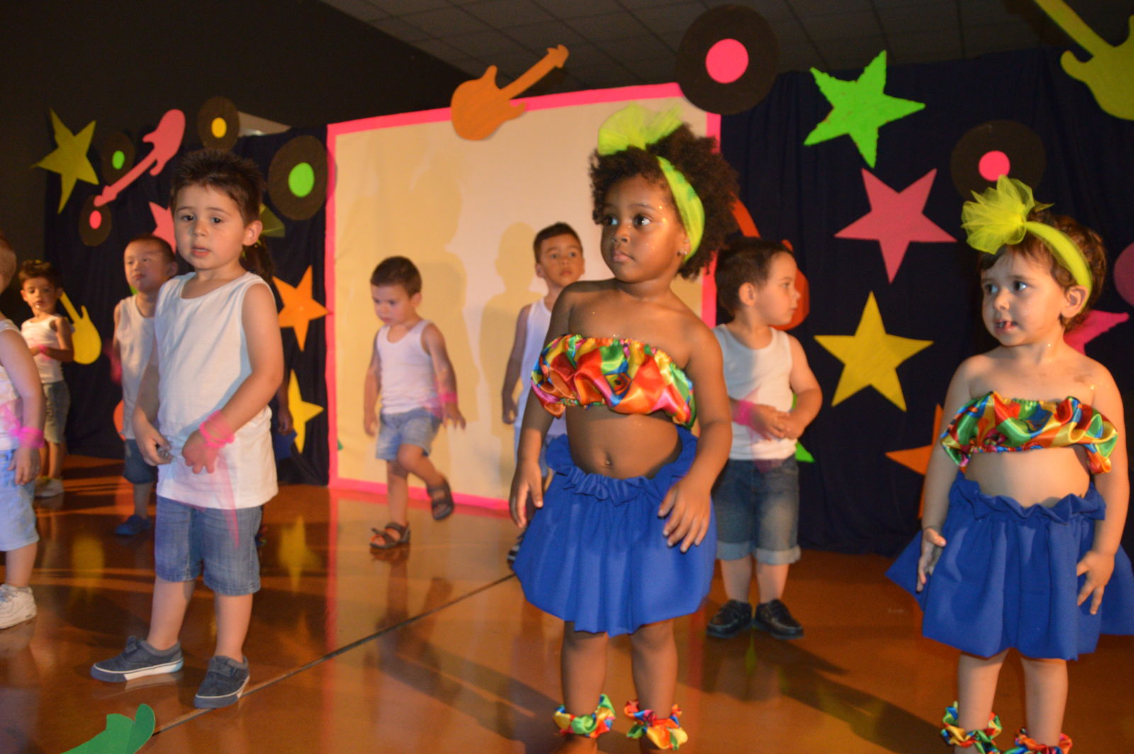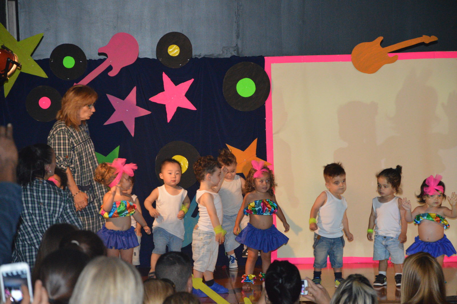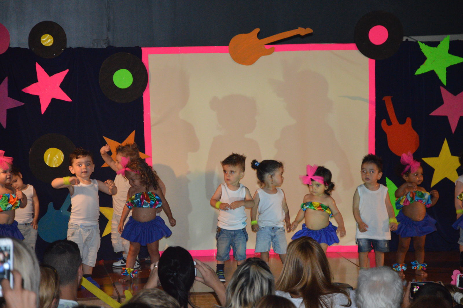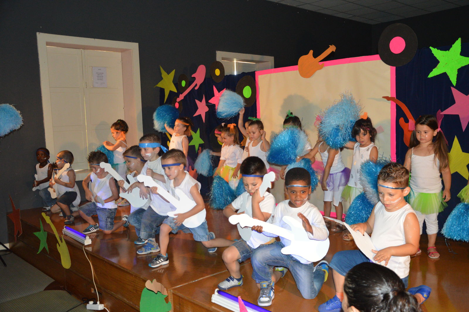 No passado dia 3 de Julho celebramos o final de mais um ano letivo. Fizemos uma grande festa com a presença dos pais, que vieram assistir a um espetáculo protagonizado pelos meninos de todas as salas, que teve como tema os anos 80! No início houve lugar a uma pequena apresentação de judo. Depois, cada sala apresentou um número de dança com um tema musical dessa década! Os finalistas também tiveram direito a um momento especial para assinalar o final de uma etapa, que esperamos, tenha sido muito importante nas suas vidas. Receberam uma cartola, uma bengala, um livro e um diploma. No fim ainda dançaram mais uma vez e assistiram a uma apresentação de fotografias que ilustrou um pouco do seu percurso nesta escola. Os pais que tiveram disponibilidade para nos ajudar no embelezamento do recreio receberam um diploma como reconhecimento pela ajuda prestada. E ainda houve espaço para um pequeno convívio entre todos no recreio.