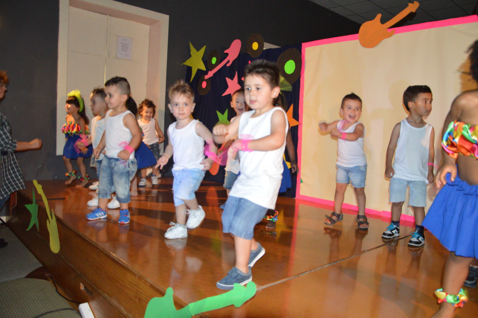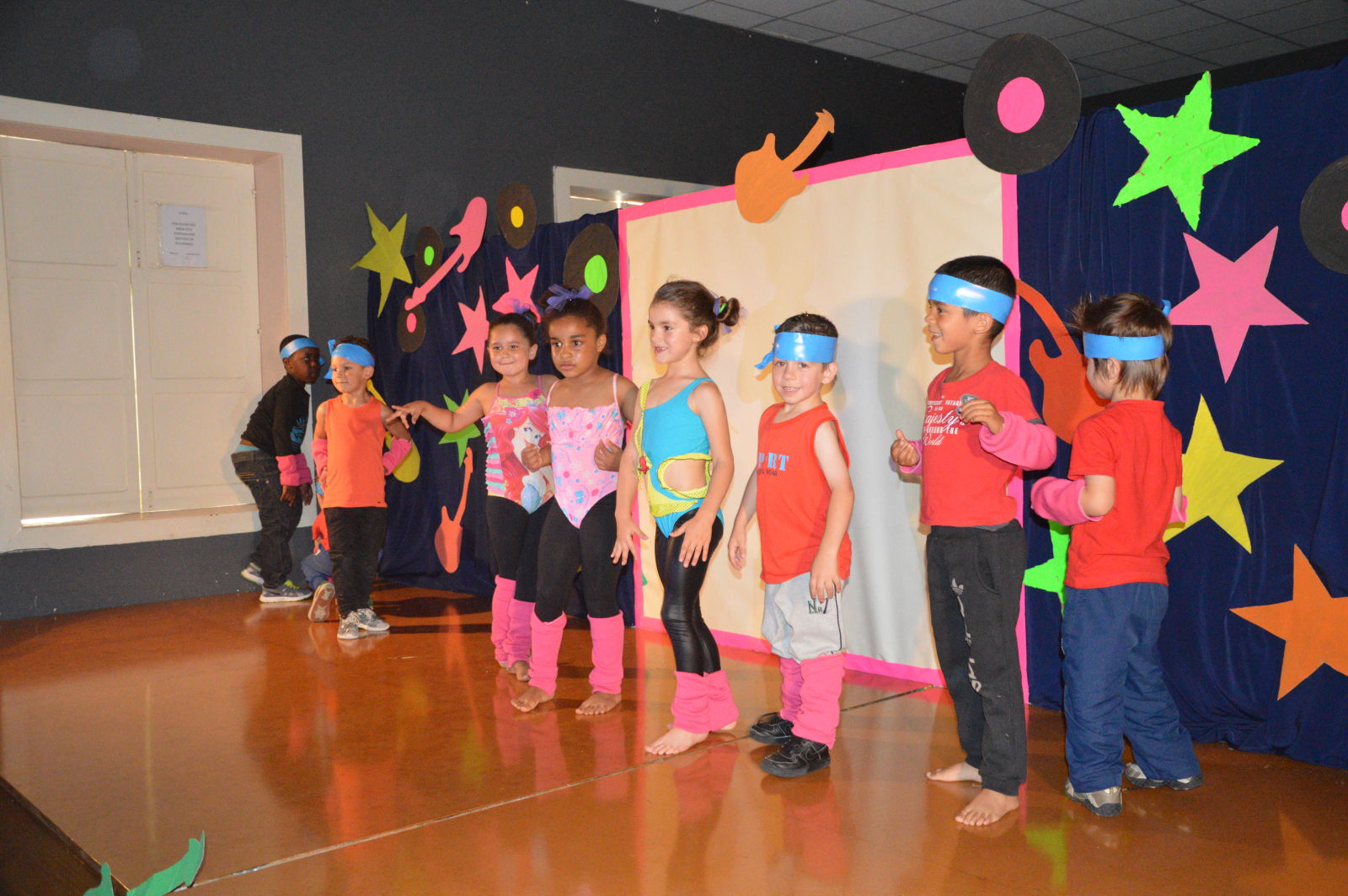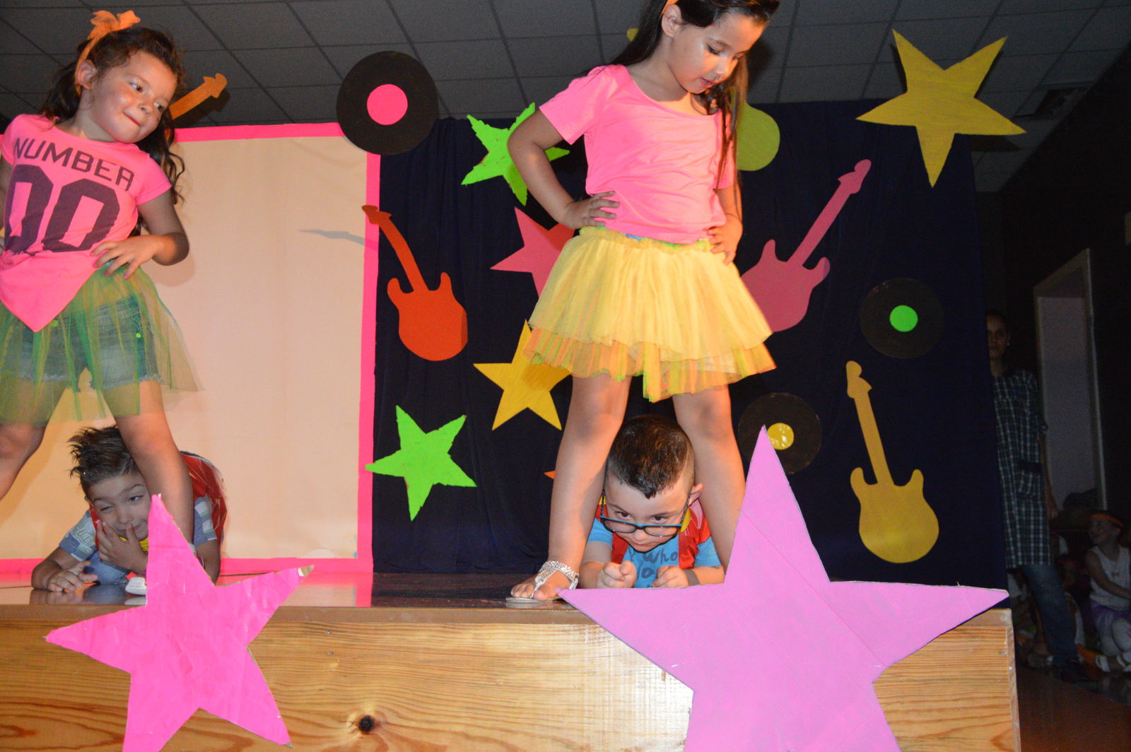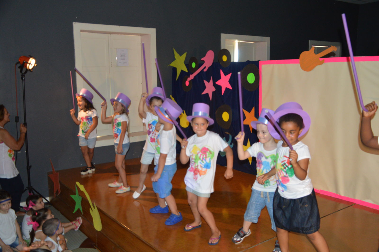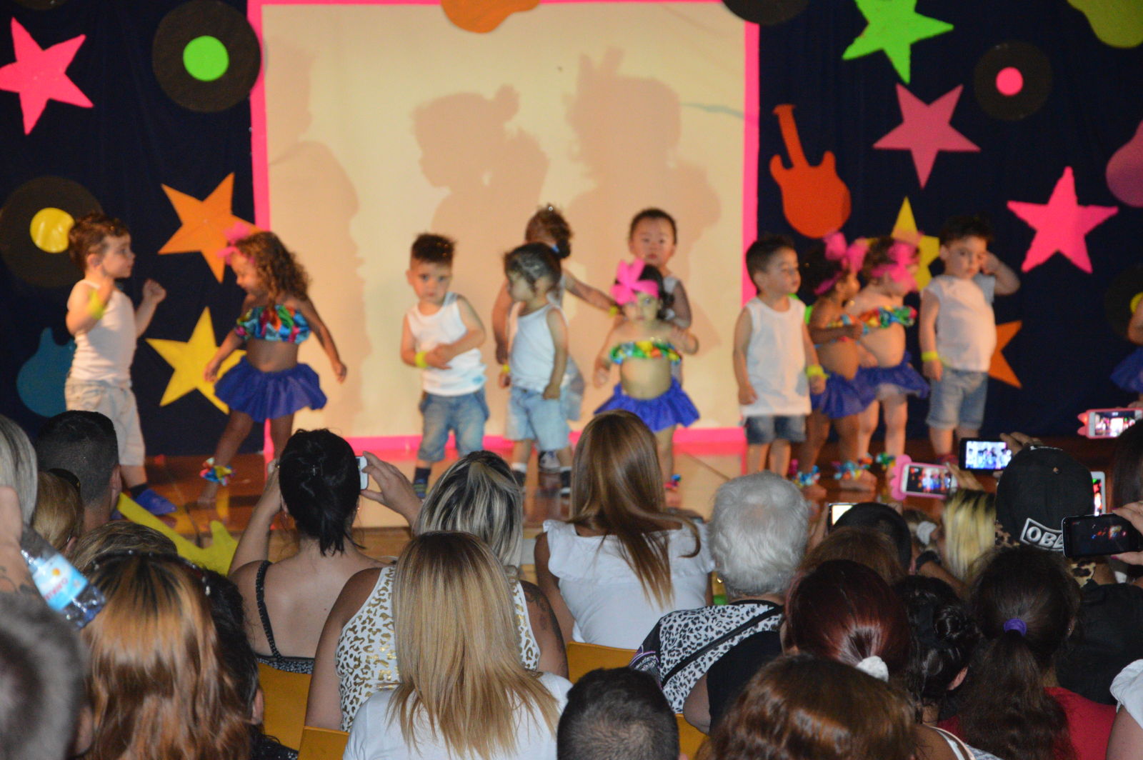 No passado dia 3 de Julho celebramos o final de mais um ano letivo. Fizemos uma grande festa com a presença dos pais, que vieram assistir a um espetáculo protagonizado pelos meninos de todas as salas, que teve como tema os anos 80! No início houve lugar a uma pequena apresentação de judo. Depois, cada sala apresentou um número de dança com um tema musical dessa década! Os finalistas também tiveram direito a um momento especial para assinalar o final de uma etapa, que esperamos, tenha sido muito importante nas suas vidas. Receberam uma cartola, uma bengala, um livro e um diploma. No fim ainda dançaram mais uma vez e assistiram a uma apresentação de fotografias que ilustrou um pouco do seu percurso nesta escola. Os pais que tiveram disponibilidade para nos ajudar no embelezamento do recreio receberam um diploma como reconhecimento pela ajuda prestada. E ainda houve espaço para um pequeno convívio entre todos no recreio.