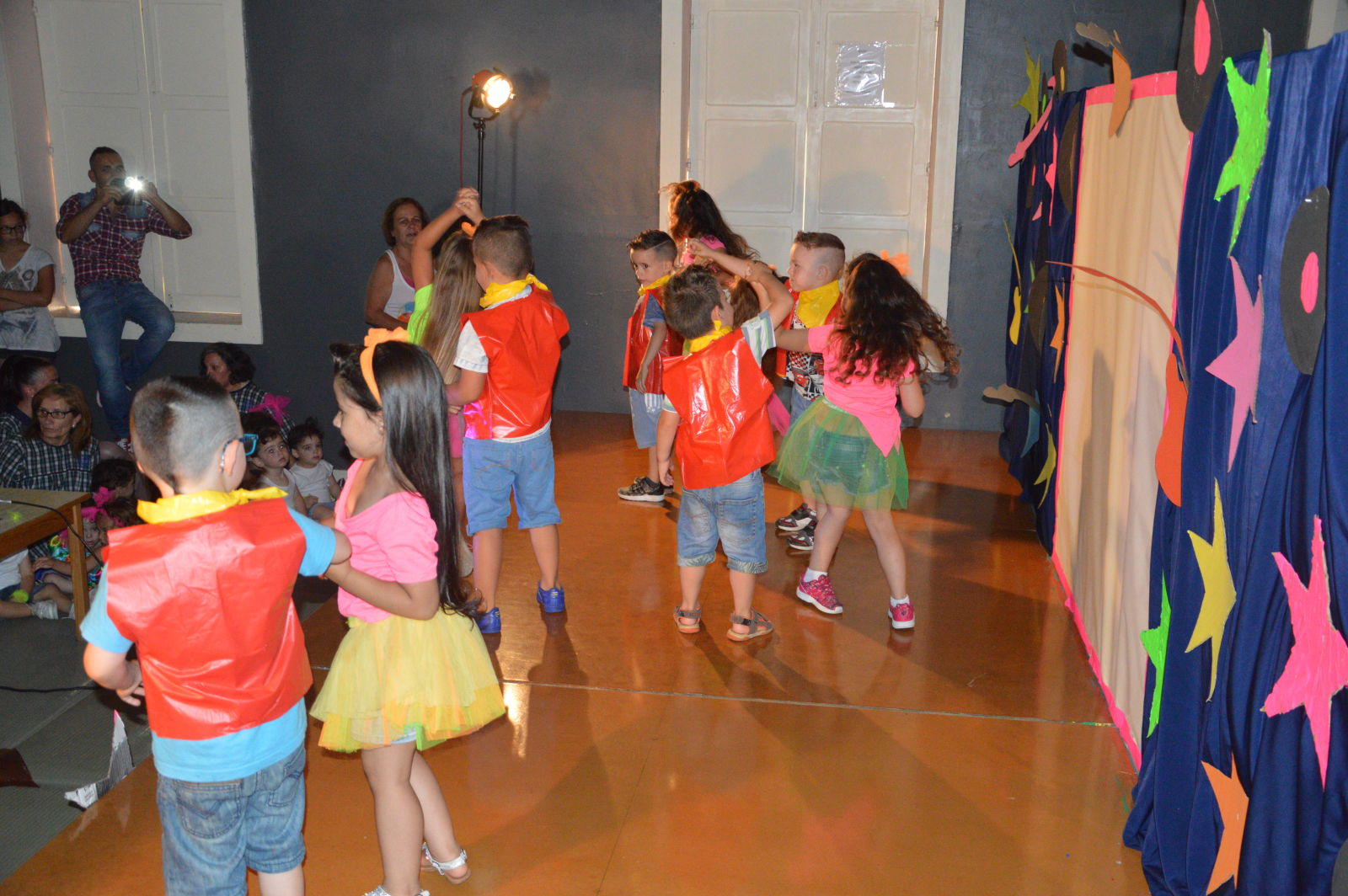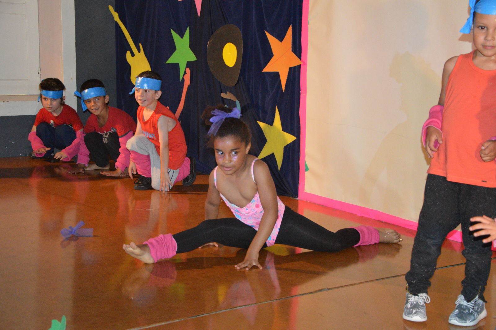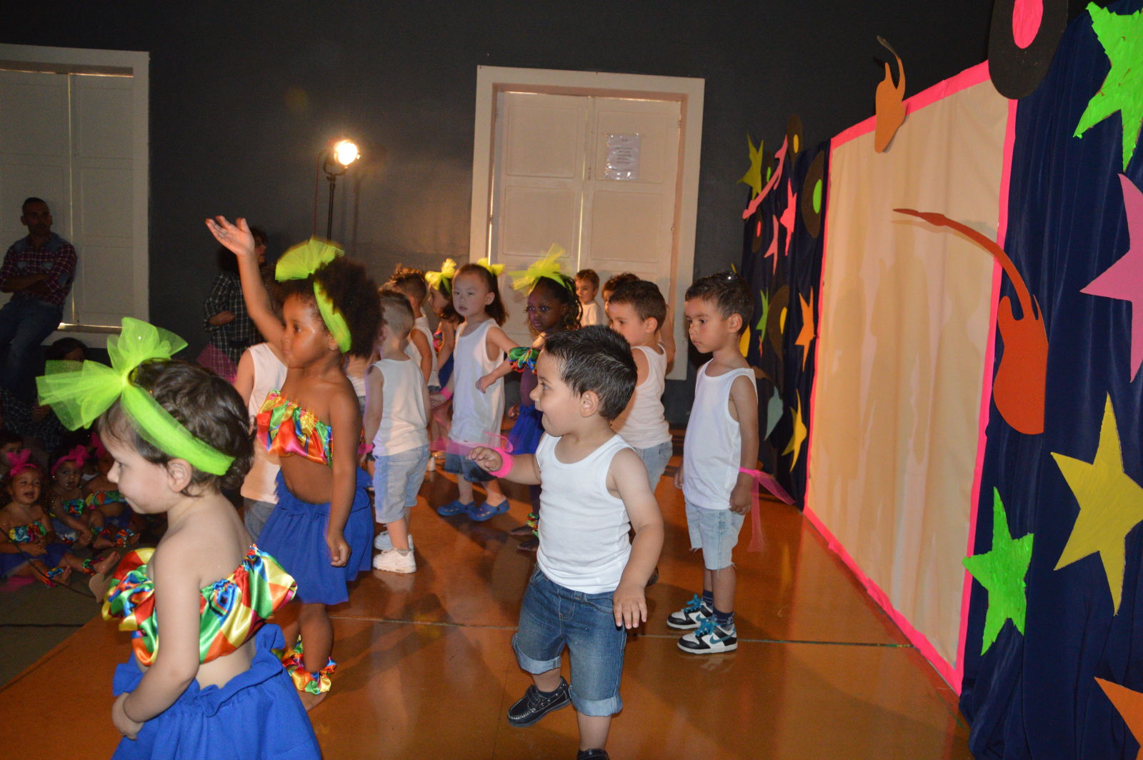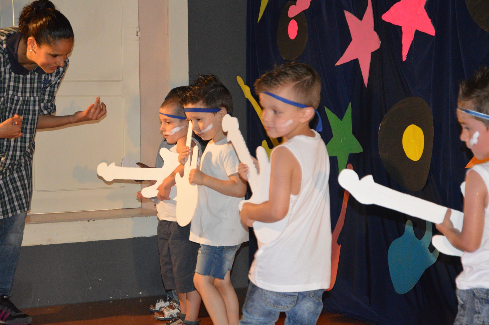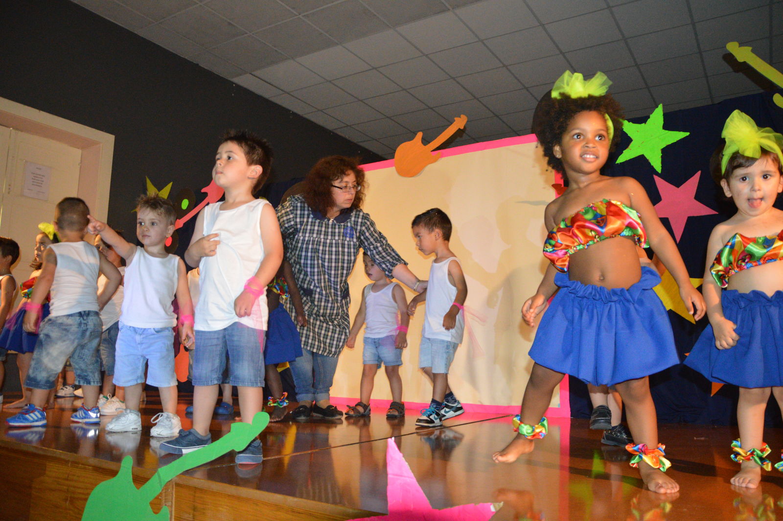 No passado dia 3 de Julho celebramos o final de mais um ano letivo. Fizemos uma grande festa com a presença dos pais, que vieram assistir a um espetáculo protagonizado pelos meninos de todas as salas, que teve como tema os anos 80! No início houve lugar a uma pequena apresentação de judo. Depois, cada sala apresentou um número de dança com um tema musical dessa década! Os finalistas também tiveram direito a um momento especial para assinalar o final de uma etapa, que esperamos, tenha sido muito importante nas suas vidas. Receberam uma cartola, uma bengala, um livro e um diploma. No fim ainda dançaram mais uma vez e assistiram a uma apresentação de fotografias que ilustrou um pouco do seu percurso nesta escola. Os pais que tiveram disponibilidade para nos ajudar no embelezamento do recreio receberam um diploma como reconhecimento pela ajuda prestada. E ainda houve espaço para um pequeno convívio entre todos no recreio.