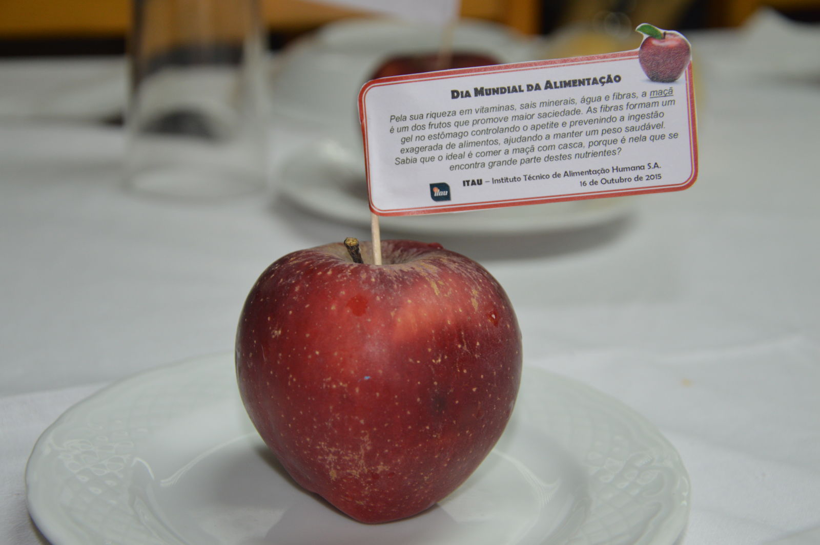 Todos os anos aproveitamos o Dia mundial da Alimentação para relembrar os nossos utentes da importância da alimentação saudável. Com a colaboração da empresa fornecedora das refeições do Centro marcamos a data com cartazes, uma maçã “especial” e ainda uma chamada de atenção para a validade da celebração desta data nomeadamente ao nível da saúde. Mesmo não sendo possível a muitos o acesso a uma dieta equilibrada vamos procurando que tal aconteça ao nível das refeições por nós servidas ao longo do ano.