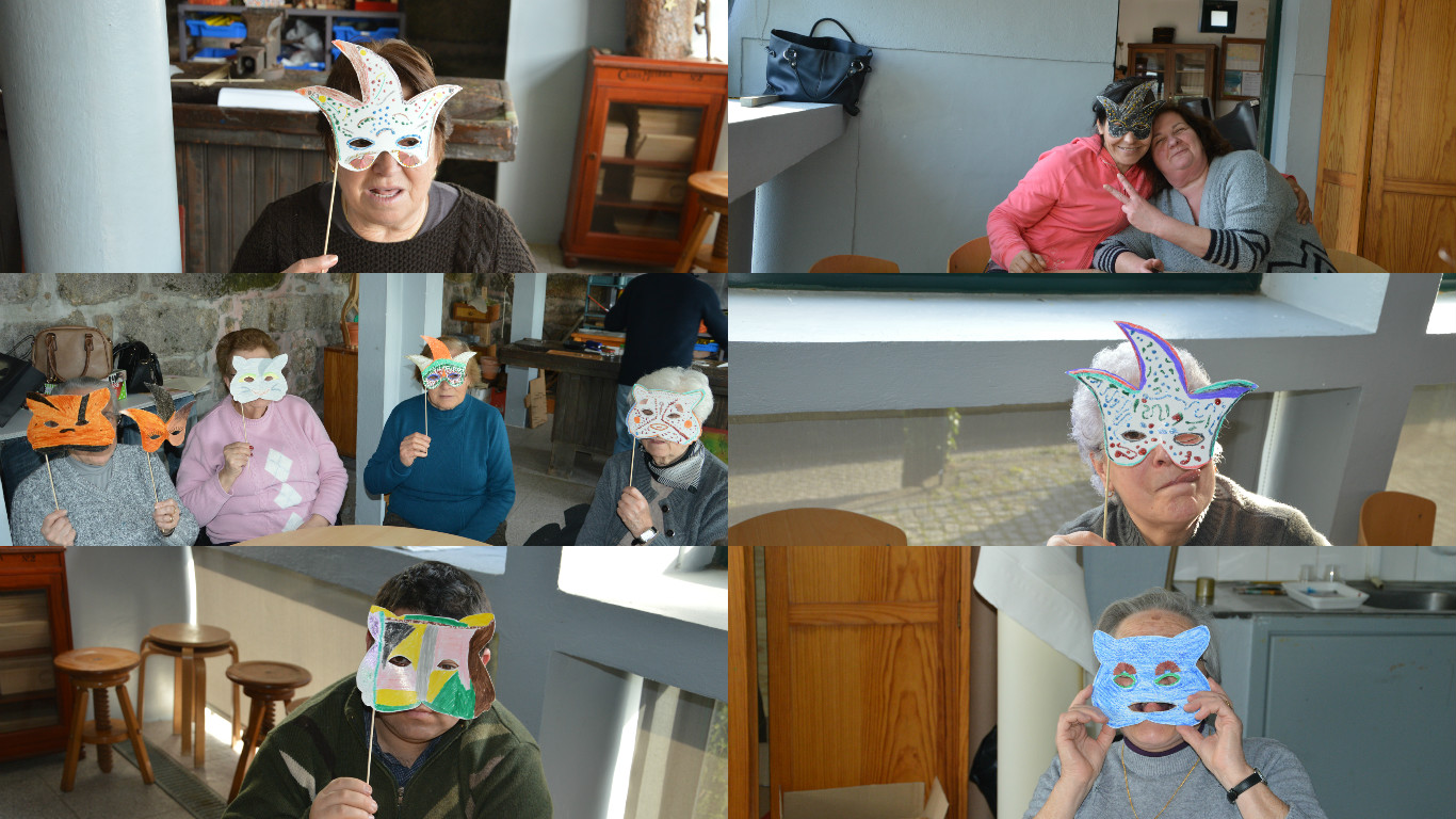Apesar dos altos muros que protegem as nossas instalações dos centros de dia e comunitário, não perdemos a oportunidade de conhecer outras realidades e outras formas de trabalhar fora desses muros. Foi assim que na semana anterior ao Carnaval respondemos afirmativamente a dois convites, um da Câmara Municipal do Porto, para participar numa oficina de construção de máscaras e um outro da Obra Social de Nossa Senhora da Boa Viagem para um momento de confraternização com utentes. Assim no dia 3 de Fevereiro fomos até ao Palácio de Cristal onde, sob a supervisão de um formador teve lugar a referida oficina.
