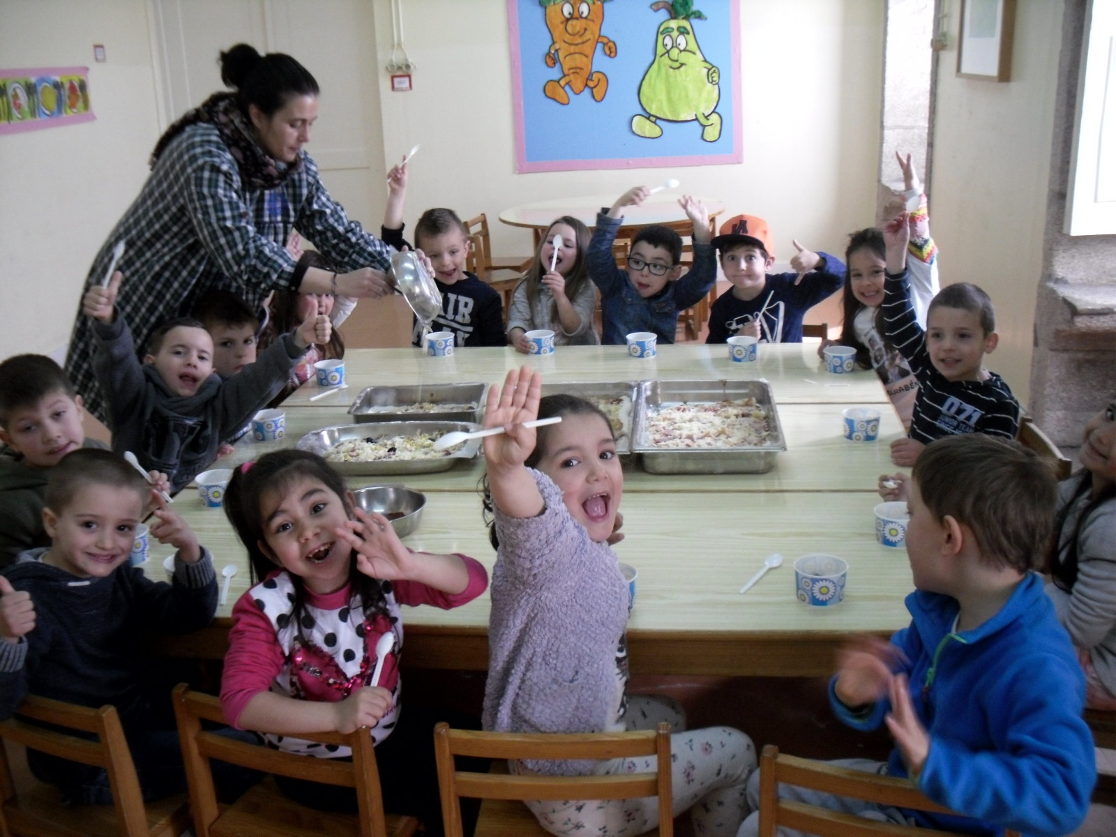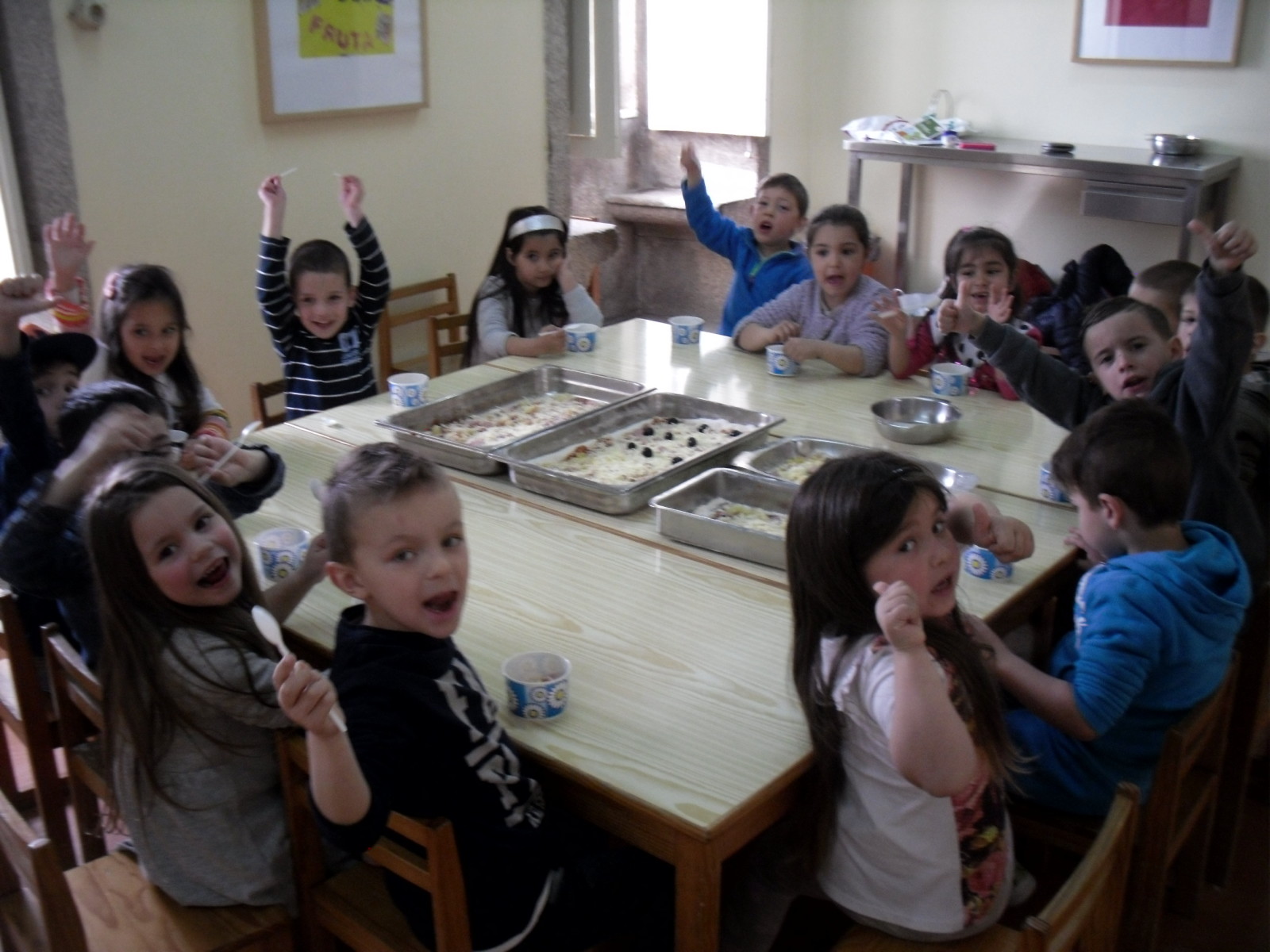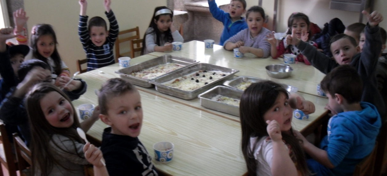 Os meninos da sala dos 4 / 5 anos estão muito trabalhadores… puseram a mão na massa, literalmente, e fizeram uma bela Pizza!!!
