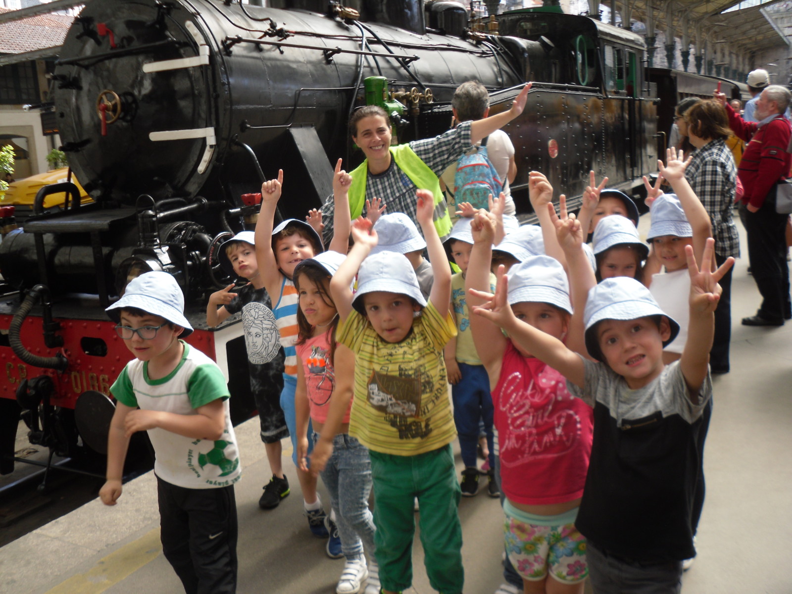 As crianças do jardim de infância do Centro Social da Sé foram visitar o comboio histórico que esteve na estação de S. Bento entre o dia 31 de Maio e o dia 3 de Junho.