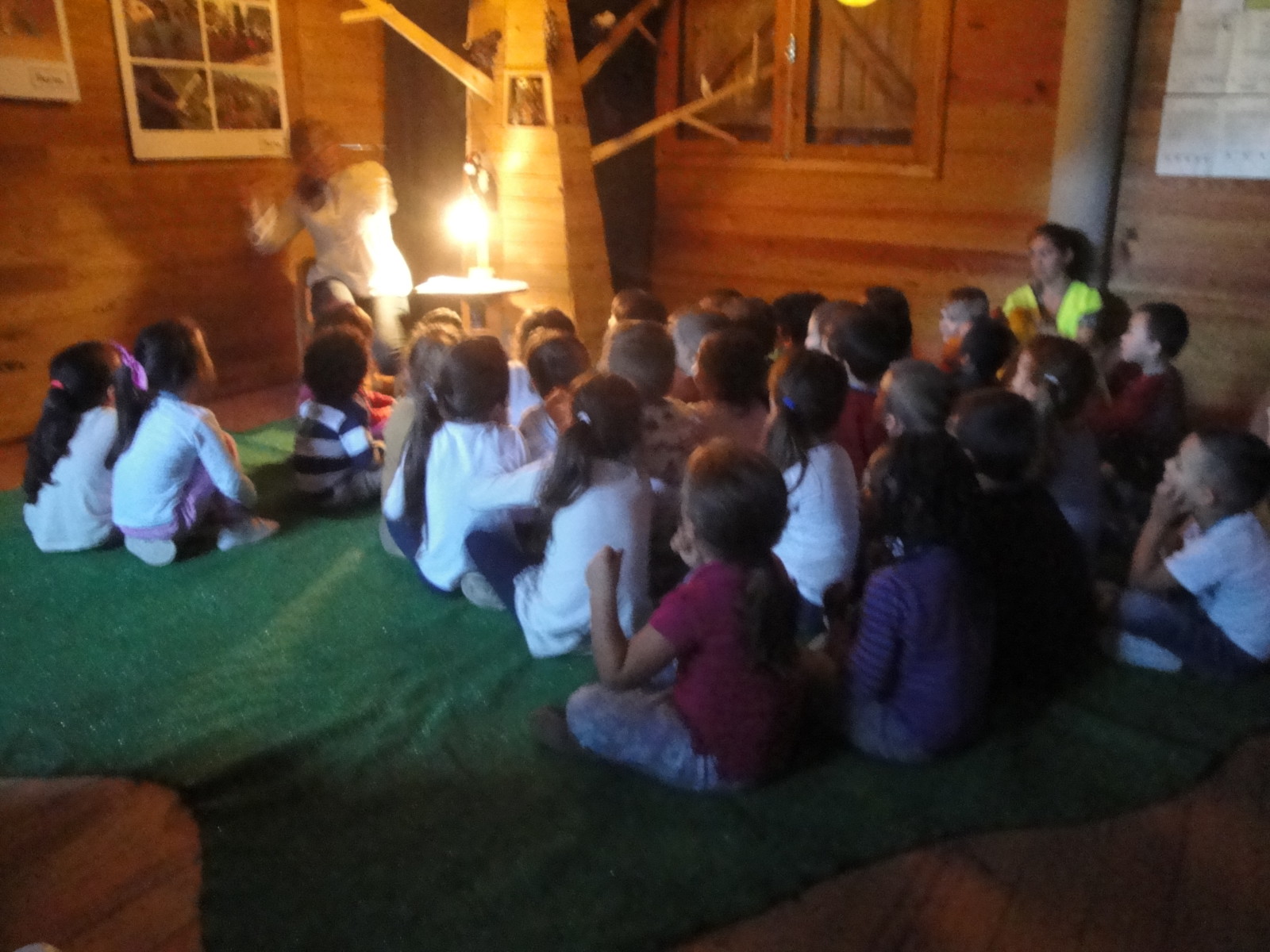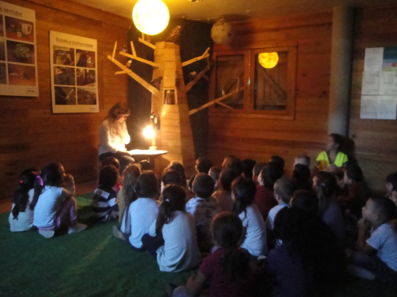 Fomos de autocarro e quando lá chegamos entramos numa casinha de madeira muito acolhedora e assistimos à história, maravilhados com o cenário e com as surpresas que foram sendo reveladas!