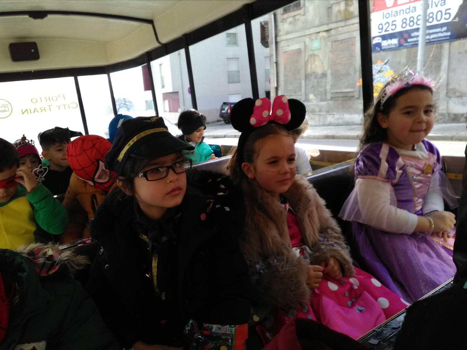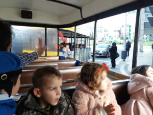 À tarde, os meninos e meninas do jardim-de-infância foram dar um belo passeio de comboio turístico pelas ruas da cidade.