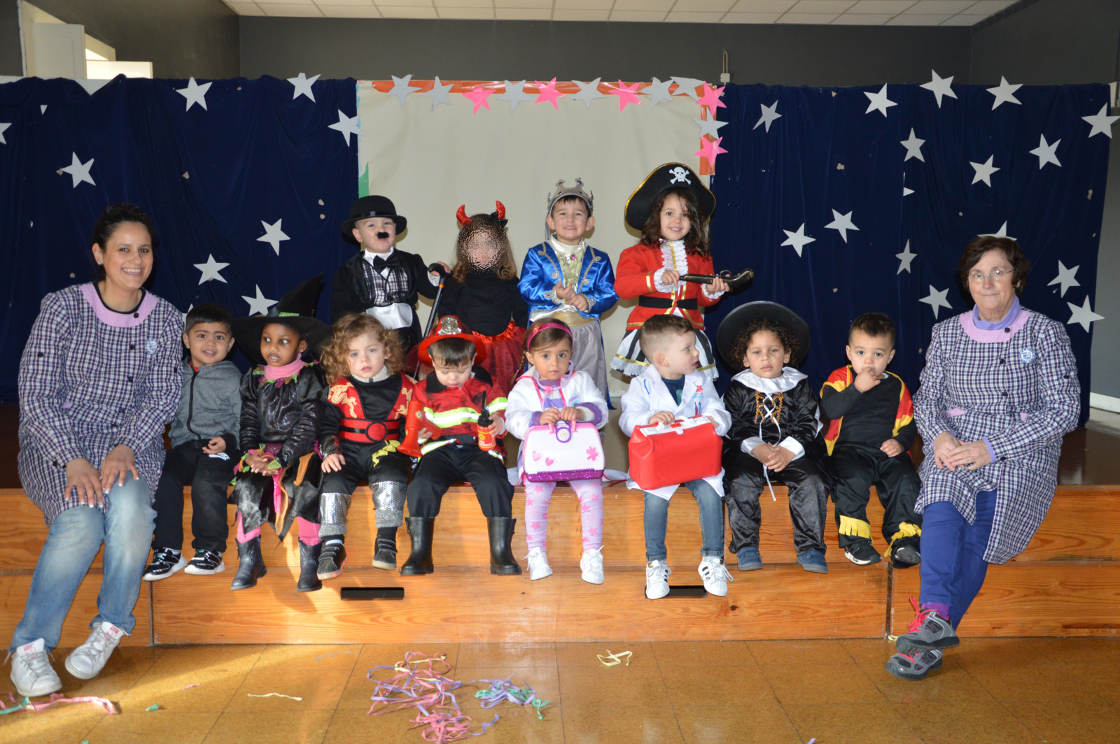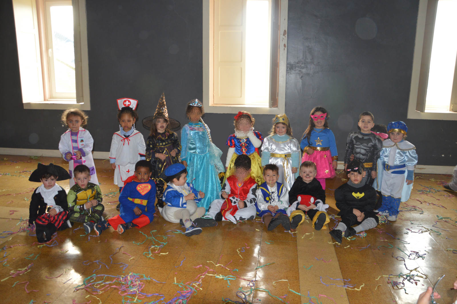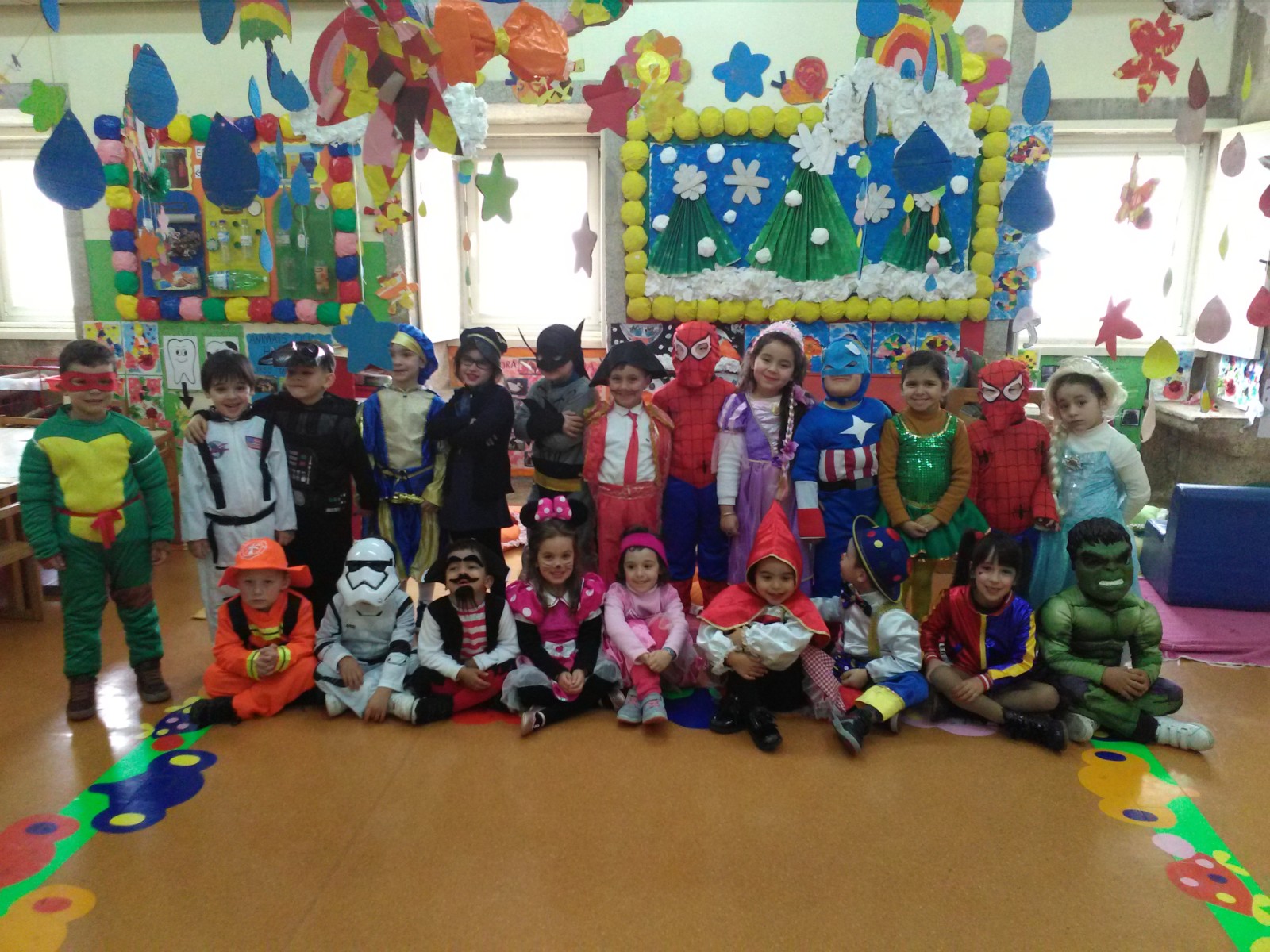 Os pais acederam ao convite e os meninos vieram vestidos a rigor e desfrutaram das suas fantasias. Houve muita brincadeira e baile de máscaras!