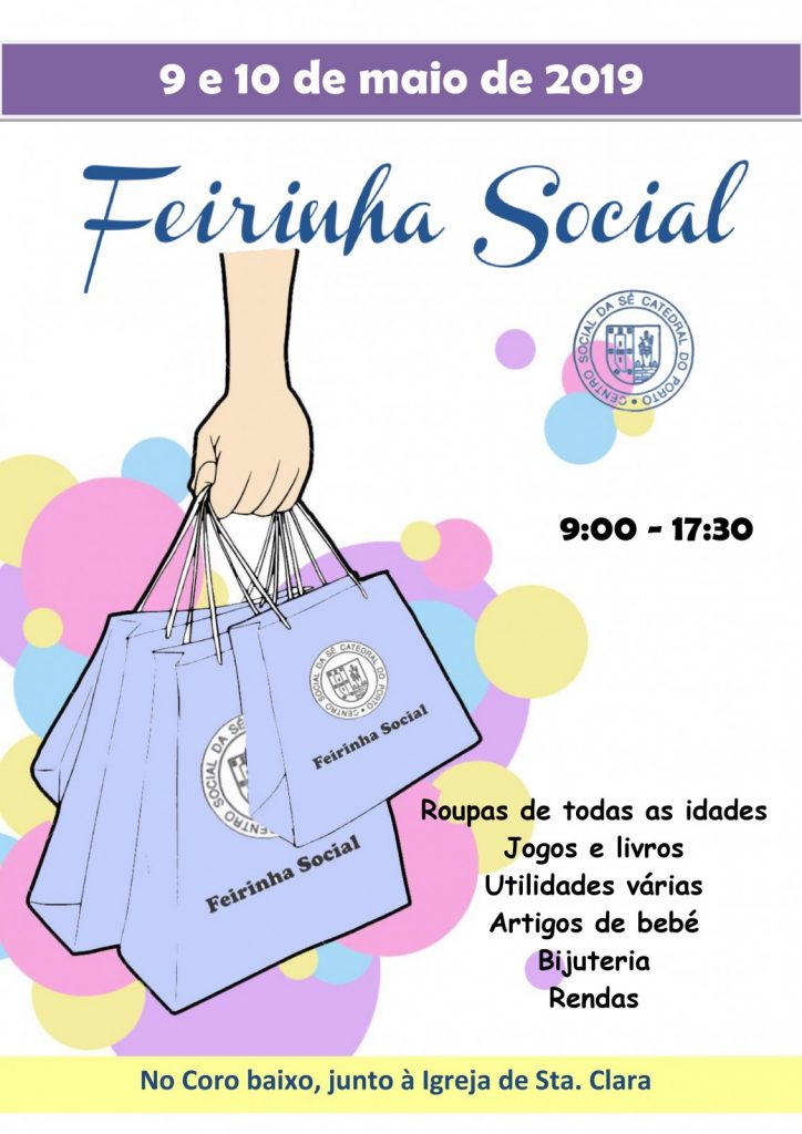 Hoje e amanhã dias 9 e 10 de Maio, entre as 9:00 e as 17:30, decorre uma feira social no recinto ao lado do Coro baixo, na Igreja de Sta. Clara.