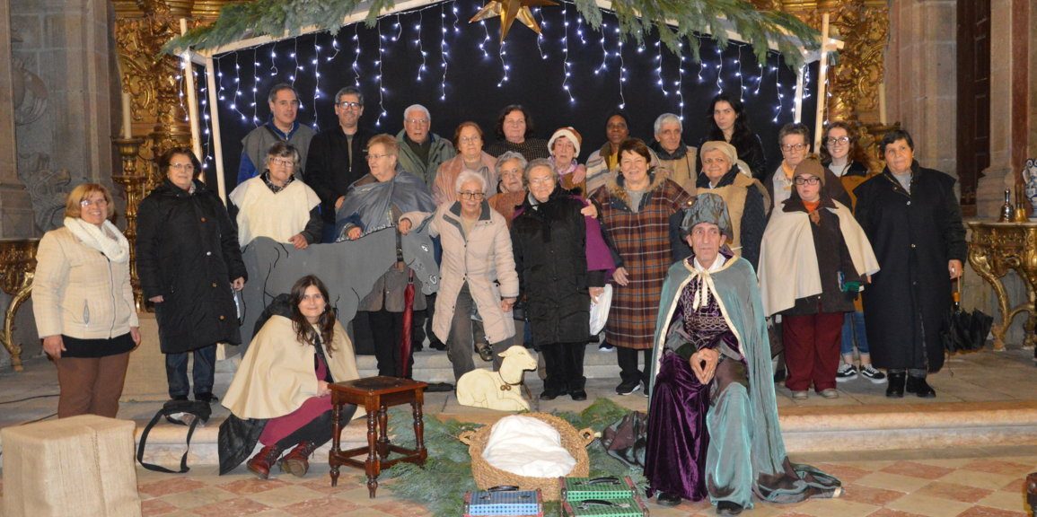 O dia do almoço de Natal reservava ainda outras surpresas. Assim os nossos utentes avançaram para uma actividade conjunta com residentes da zona histórica, partindo da organização garantida pelo Centro Social e Paroquial de S. Nicolau. O Presépio ao vivo. Apesar do estado do tempo não permitir o desfile tal como estava previsto, desde a árvore de Natal junto ao edifício da Câmara até à Igreja de S. João Novo, os festejos foram concentrados na Igreja permitindo a todos viverem esta quadra de uma forma muito especial.