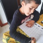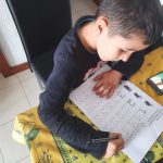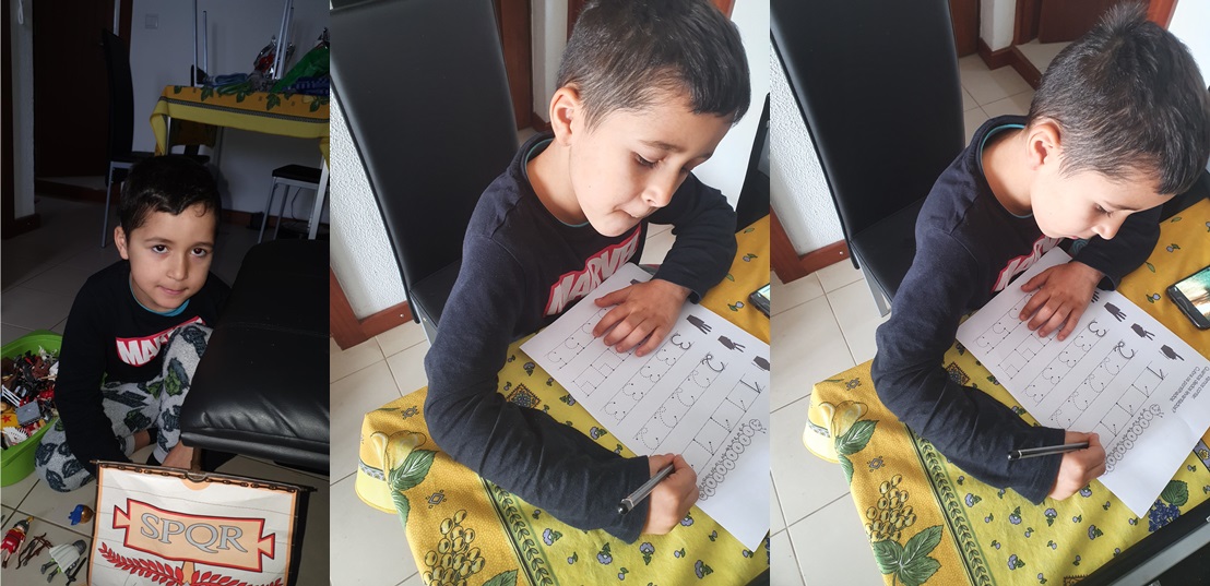 O Ian enviou-nos uma foto com os seus Playmobil e outra em que está muito concentrado a fazer um grafismo numa ficha.