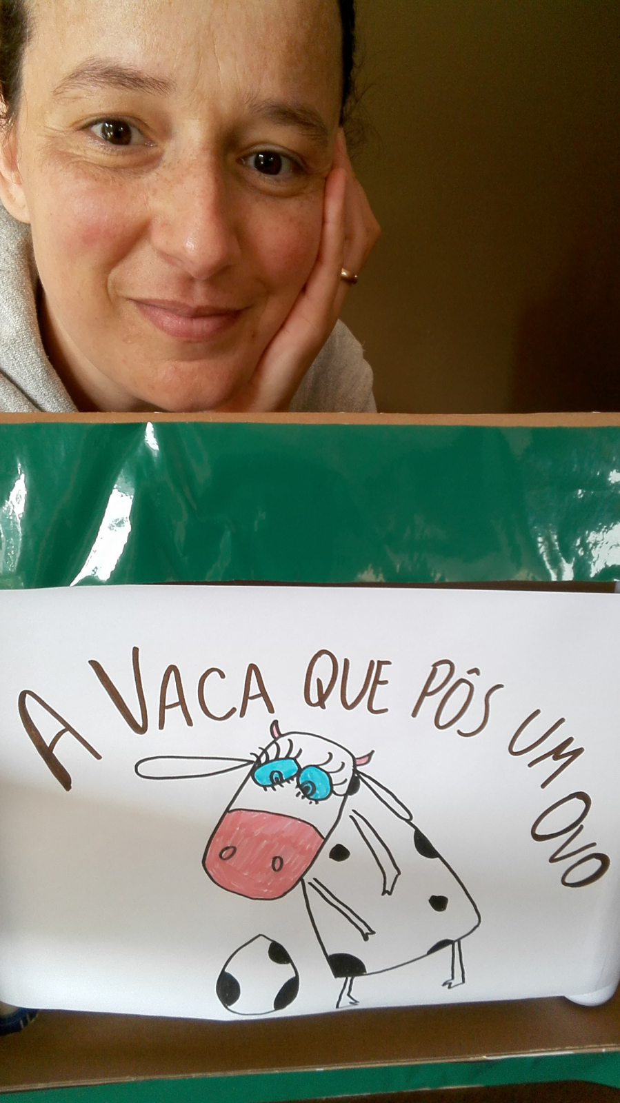 A educadora Sílvia vai contar uma história muito engraçada da vaca que pôs um ovo.