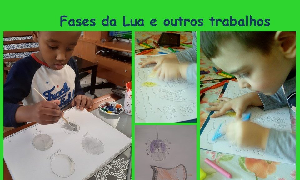 Colorir desenhos ou pintar as Fases da Lua, todos os trabalhos são lindos.