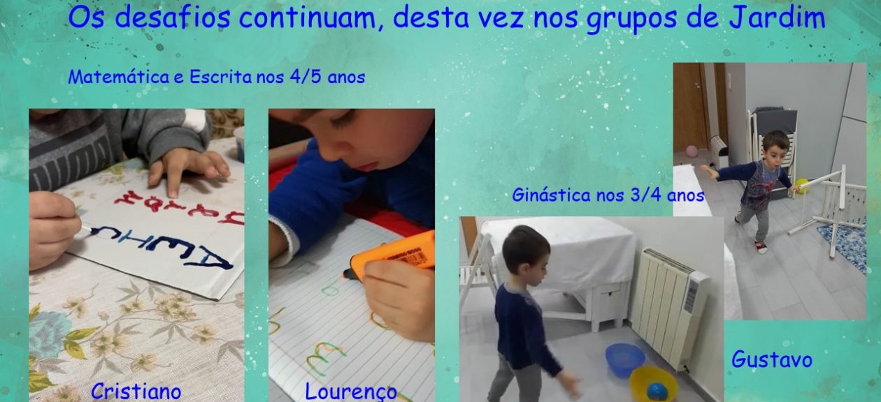 Nos 4/5 anos, actividades de escrita e matemática, e nos 3/4 anos de expressão motora, a que os meninos gostam de chamar “ginástica”