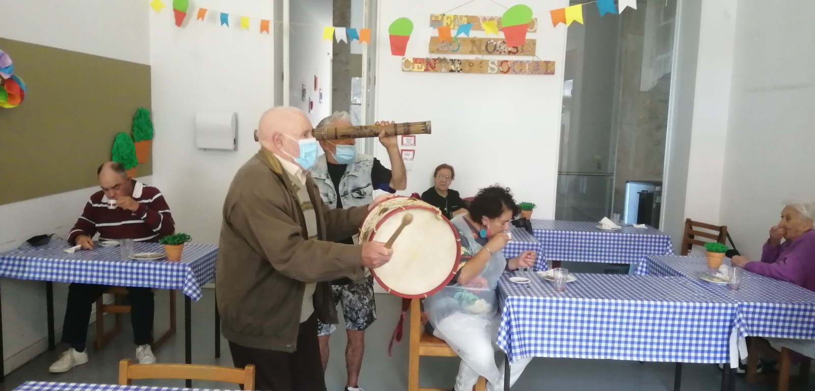 Se há um ano o S. João foi vivido de forma isolada, este ano já foi possível juntar a almoçar (com as devidas distâncias) um grupo de utentes bastante animado. Os restantes festejaram à distância e ainda houve espaço para que alguns demonstrassem o seu apreço pelas festividades através das famosas quadras de S. João.