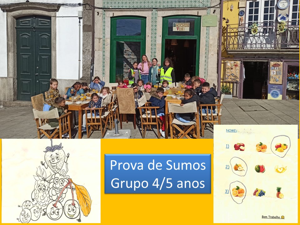 Na 6ªfeira passada, o nosso grupo de Pré-Escolar, da sala dos 4/5 anos, a convite da família da Carolina, foi à Ribeira fazer uma prova de sumos. Foram todos muito bem recebidos, e a actividade estava muito bem organizada.