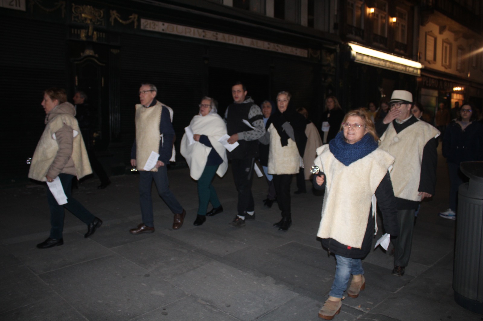 Após concentração no Terreiro do Paço os participantes com cânticos e som de campainhas anunciando o nascimento do Salvador dirigiram-se até à Igreja de São João Novo onde se encontrava já uma representação do Presépio . Após a entrega do Ouro, Incenso e Mirra pelos Magos as instituições envolvidas, de uma forma simbólica, construíram uma Estrela de Natal explicando o significado que aquela Luz tinha para os que participaram nesta edição do Presépio ao Vivo. Ainda houve tempo para nos deliciarmos com a apresentação do Coro Gospel “Wallow Choir” e terminarmos a noite num reconfortante chá.