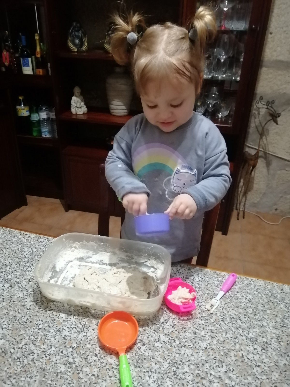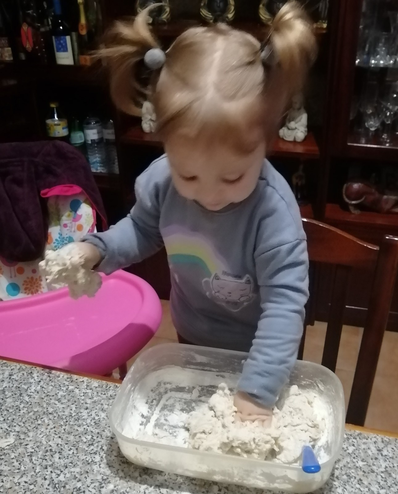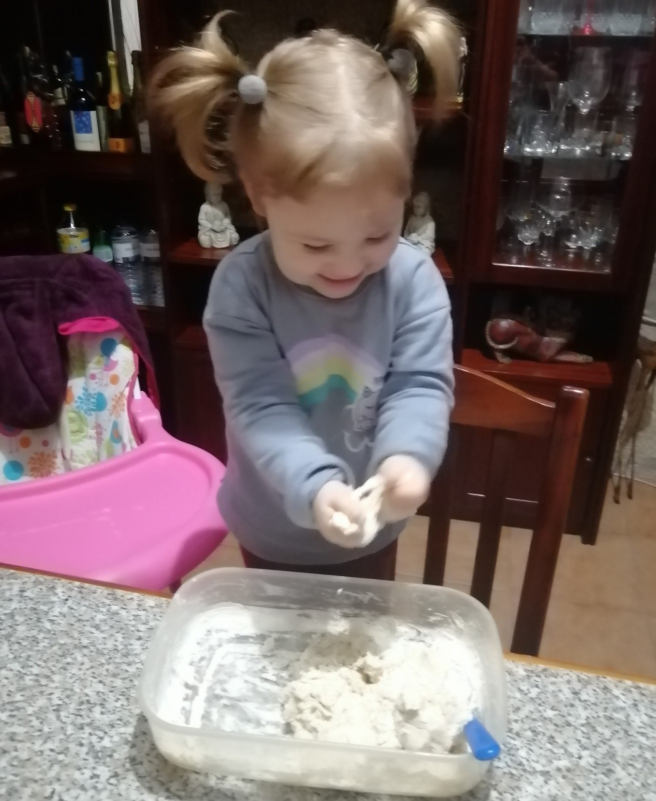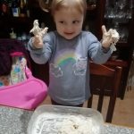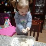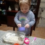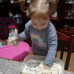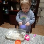 Vejam como ficou feliz a Isabella, a experimentar a areia feita em casa!