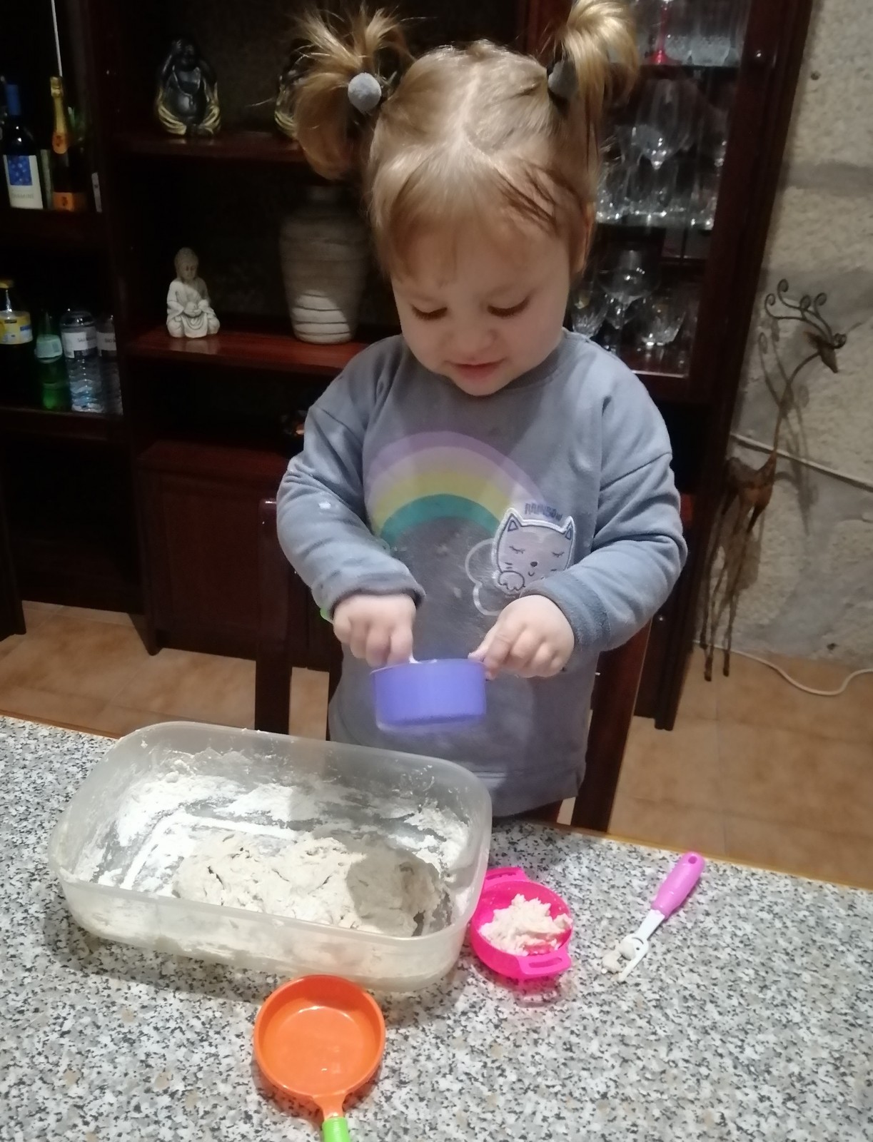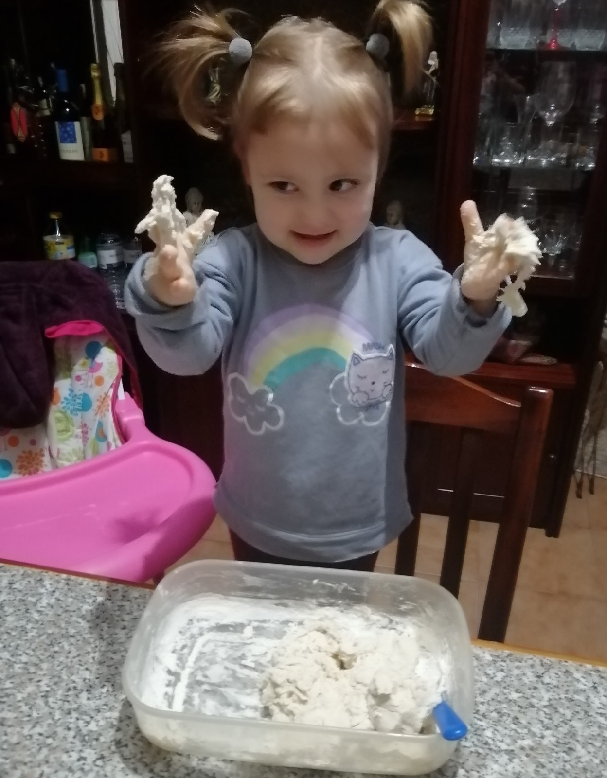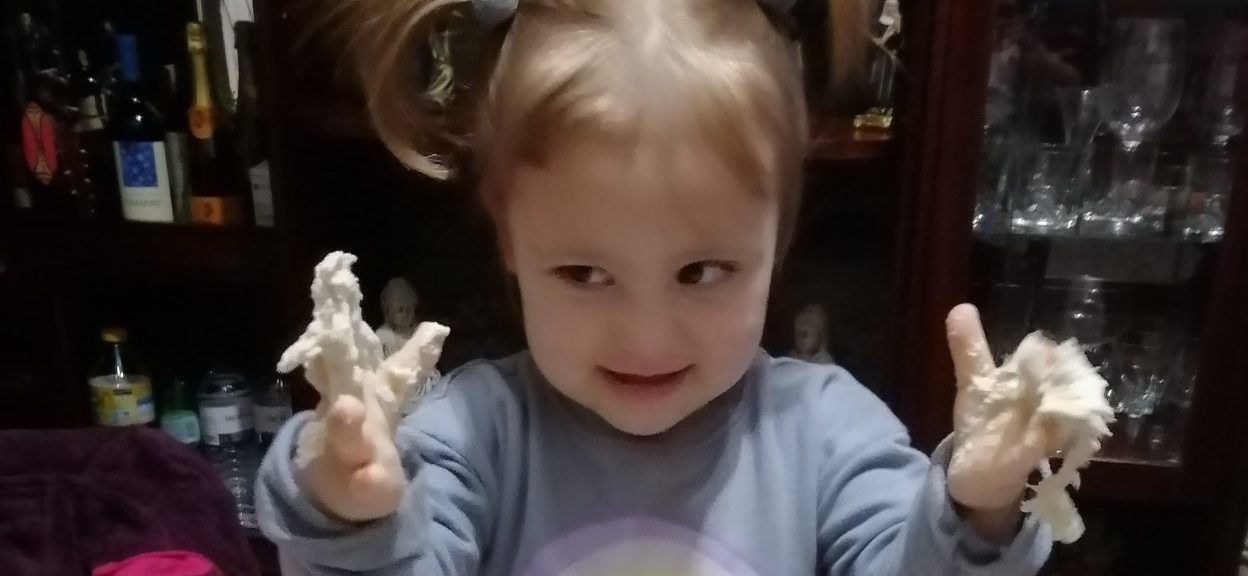 Vejam como ficou feliz a Isabella, a experimentar a areia feita em casa!